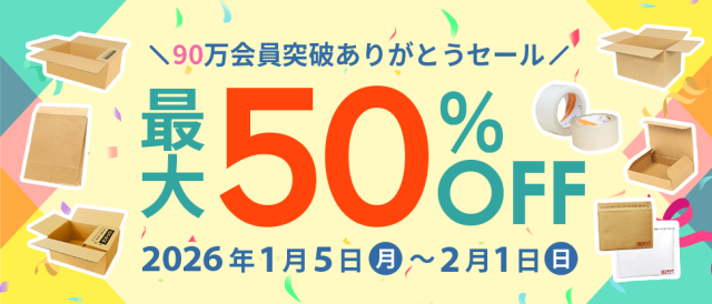 この90万会員突破に感謝の気持ちを込めて、来年1月5日よりダンボールワンでは「90万会員突破ありがとうセール」を実施いたします。お得なアイテムが多数ございますので、ぜひこの機会にご利用ください。